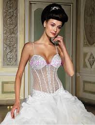 There's no set rules on what brides ought to wear on their wedding. What is important is that the dress is something they can move comfortably in & is something that flatters the shape of the body. Also, the bridal dress has to be in theme with the marriage itself. A sweeping train would be out of place in a beach wedding, while a short cocktail dress would be unsuitable for a formal church wedding.